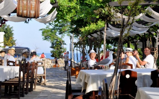 Prie bulgaro vilionių prisidėjo ir vaizdas už jo nugaros – sena akmeninė taverna, vynuogėmis apauginta terasa, puikus vaizdas į lygią kaip stiklas Juodąją jūrą, gera muzika, žuvėdros, malonūs padavėjai. O kur dar fantastiška žuvienė, puikios skrudintos stintelės, skanus jogurto ir žaliųjų figų desertas, geras vynas…