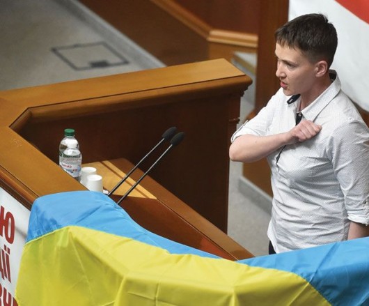 Gegužės 25 d. Ukrainos didvyrė Nadija Savčenko (35 m.) buvo iškilmingai sutikta Kijevo oro uoste. Beveik dvejus metus praleidusi Rytų Ukrainos separatistų, paskui Rusijos nelaisvėje, N.Savčenko grįžo su politinio svorio našta, nors Ukrainos politikoje reiškėsi netiesiogiai.