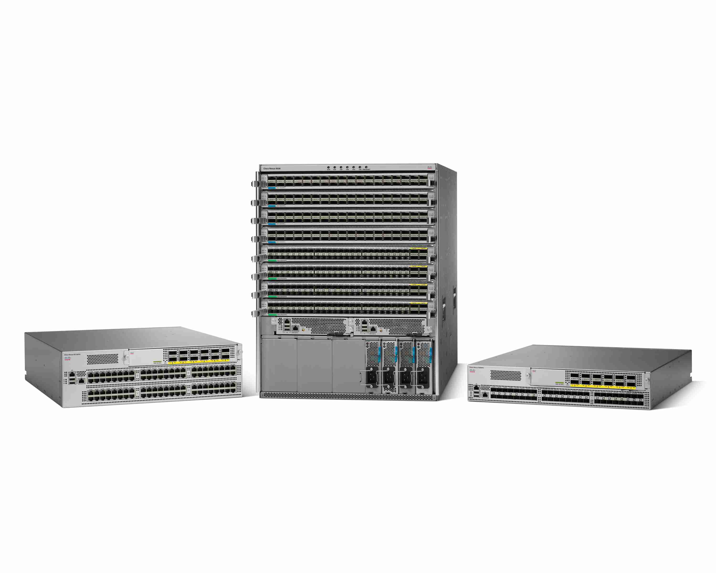 „Nexus 9000“ komutatorių šeimai priklauso „Nexus 9508“ komutatorius, „9396PX/93128TX“ komutatorius, „Cisco“ aplikacijų virtualusis komutatorius (AVS), „ASA 5585-x“ saugumo serveris ir ASA virtualioji užkarda (vASA).