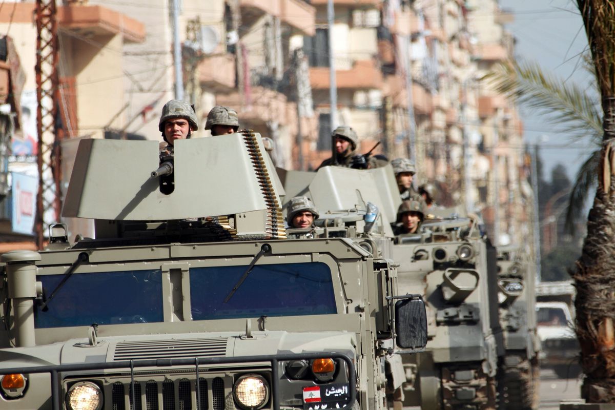 Lebanese soldiers in military vehicles are seen after being deployed following two days of clashes near the Sunni Muslim Bab al-Tabbaneh neighbourhood in Tripoli, northern Lebanon February 12, 2012. Two people were killed and at least eight wounded in street battles in Lebanon’s northern city of Tripoli on Saturday, a security source said, during a second day of clashes between supporters and opponents of Syrian President Bashar al-Assad. REUTERS/Omar Ibrahim (LEBANON – Tags: POLITICS CIVIL UNREST MILITARY)