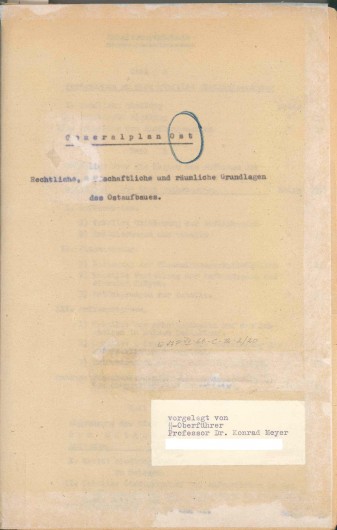 Prieš 70 metų, 1941 m. liepos mėnesį, Berlyno universiteto profesorius Konradas Meyeris-Hetlingas pateikė SS reichsfiureriui Heinrichui Himmleriui garsiojo Rytų teritorijų kolonizavimo generalinio plano “Ost” pirmąjį variantą. Jame buvo numatytas pokarinis Rytų Europos šalių tvarkymas ir ekonominis vystymas.