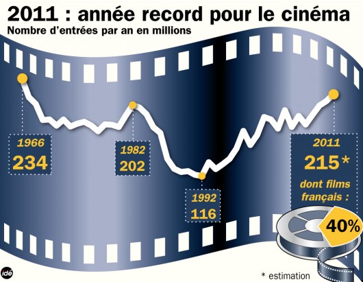 Prie sėkmingų rezultatų ir 405 mln. eurų pajamų (19 proc. daugiau nei 2010 m.) labiausiai prisidėjo Luco Bessono prodiusuotas veiksmo trileris “Kolombiana” (7,71 mln. parduotų bilietų), Venecijos kino festivalį juokinusi Romano Polanskio komedija “Kivirčas” (1,86 mln.), “Oskarų” viltimis nušvitęs meilės laiškas nebyliojo kino erai “Artistas” (803 tūkst.), pažintinė trimatė ekskursija “Sea Rex – Jūrų dinozaurai 3D” (406 tūkst.) ir San Sebastiano bei Toronto kino festivalių publikos simpatijų prizais apdovanotos Libano režisierės Nadine Labaki dramedija “Ir ką mums dabar daryt?” (345 tūkst.).