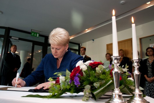 Pagerbdama tragedijos Norvegijoje aukas Lietuvos Respublikos Prezidentė Dalia Grybauskaitė pasirašė šios šalies ambasados užuojautų knygoje.