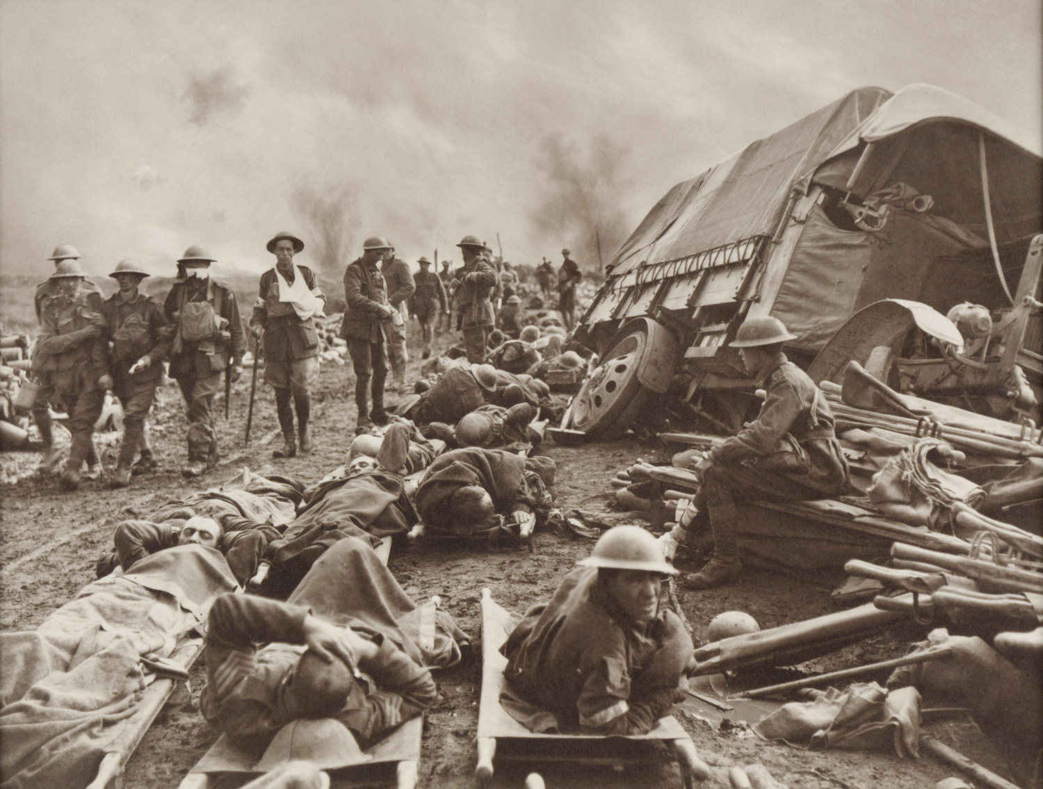 1914 m. prasidėjusiame konflikte Antantė, kurios pagrindinę jėgą sudarė Prancūzija, Britanijos imperija, Rusija ir nuo 1917 m. – JAV, įveikė karą pradėjusią Vokietiją, Austriją-Vengriją bei Bulgariją. Suirutė, į kurią įsitraukė visos didžiausios Europos tautos, prasidėjo po to, kai bosnis studentas Gavrilo Principas nušovė Austrijos-Vengrijos sosto paveldėtoją Franzą Ferdinandą. Tuo metu konfliktas suvoktas kaip garbinga kova už tėvynę bei teisybę, tačiau galiausiai tai virto stagnuojančia kova abiem pusėms įsitvirtinus apkasuose, kuriuos kartais skirdavo vos keliolika metrų.