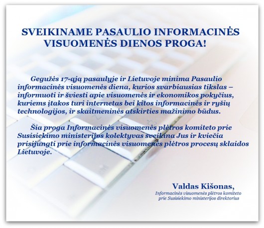 Šių metų gegužės 17-ąją, kaip ir kasmet nuo 2006-ųjų, pasaulyje ir Lietuvoje minima Pasaulio informacinės visuomenės diena.