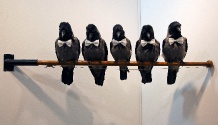 Aiškios satyrinės minties neatimsi ir iš Audriaus Gražio eksponuotų objektų. Kas gali būti tiesmukiau už stručio iškamšą kaladėje įbetonuotomis kojomis („Laisvės pojūtis“), kurią savo stende, papuoštame Leonido Donskio citata, laikė Panevėžio „A galerija“? Daugiau laisvės interpretacijoms suteikia kita to paties ciklo instaliacija, kurioje ant modernios lempos „vėjelio“ sparnų sukasi trijų kaimiškų vištų iškamšos. Pernai šį darbą rodęs panevėžiečiams, menininkas sulaukė kaltinimų neetišku gyvūnų iškamšų naudojimu. Užtat sostinės mugėje nei įkalintas strutis, nei rateliu skriejančios vištos nieko nebešokiravo. Labiau stebino kardinaliai pasikeitusi žymaus tapytojo meninė raiška.