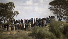 Vienoje vietoje, esančioje už 35 km į vakarus nuo Bengazio, buvo matyti sumaitoti tankai, sudegę artilerijos pabūklai ir žuvę kovotojai afrikiečiai chaki spalvos uniformomis, sakė šaltiniai.