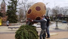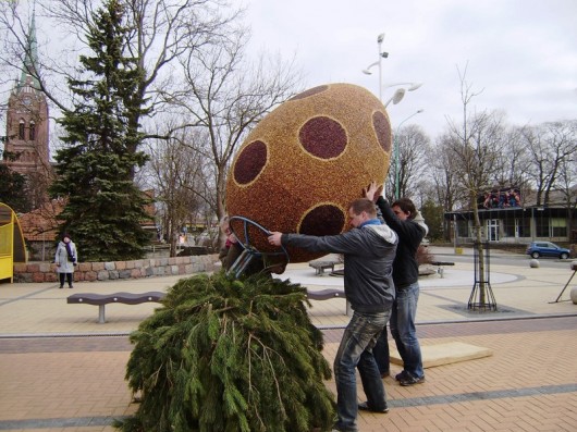 Šiandien Palangos J. Basanavičiaus gatvę papuošė didžiausias pasaulyje gintarinis Velykų simbolis – 2 metrų aukščio ir 1,5 metro pločio gintarinis margutis.
