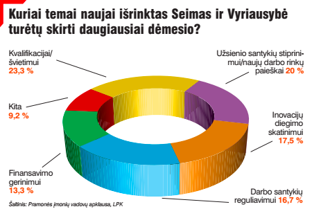 Nors atidėtas Darbo kodeksas turi įsigalioti nuo liepos, jį kuruojančios Socialinės apsaugos ir darbo ministerijos vadovo Lino Kukuraičio (kaip, beje, ir ankstesnės ministrės Algi-mantos Pabedinskienės) iniciatyvumo čia matyti nedaug. O naujasis Darbo kodeksas, kaip pabrėžia R.Dargis, – ilgai lauktas žingsnis lankstesnių darbo santykių ir Lietuvos konkurencingumo didinimo link. Naujausioje LPK atliktoje aukščiausio lygio Lietuvos vadovų nuomonių ir lūkesčių apklausoje beveik 70 proc. vadovų pareiškė jaučiantys kvalifikuotos ar nekvalifikuotos darbo jėgos trūkumą. Bet R.Dargis atkreipia dėmesį, kad migracijos klausimai kol kas taip pat yra tik pradiniame diskusijų lygyje.