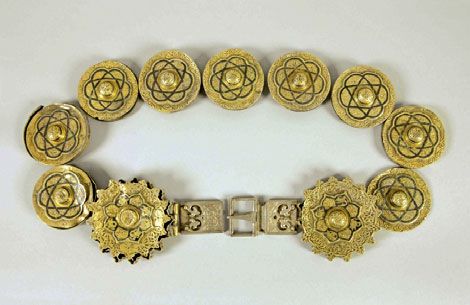 Joje pristatomas, spėjama, XIV a. pabaigos –XV a. I pusės Genujos meistrų, dirbusių Krymo pusiasalyje, Kafos mieste, sukurtas diržo segmentų rinkinys, turintis rytietiškos ornamentikos bruožų. Rinkinį sudaro 11 apskritų plokštelių, sagtis, antgaliai ir du stačiakampiai apkalai. Visos diržo detalės pagamintos iš aukštos prabos sidabro, dauguma elementų paauksuota ir juodinta. Gotikinės sagties formos ir puošyba būdinga Lombardijos ir Venecijos meistrų mokyklai, o apskritos plokštelės liudija apie vietinę, tiurkišką įtaką. Atkreiptinas dėmesys į paukščių ir basiliskų vaizdavimą plokštelėse. Šis toreutikos (meninio metalo apdirbimo) technikos kultūros paveldo paminklas yra unikali, viena brangiausių ir reikšmingiausių vertybių Baltarusijos kultūros paveldo registre.